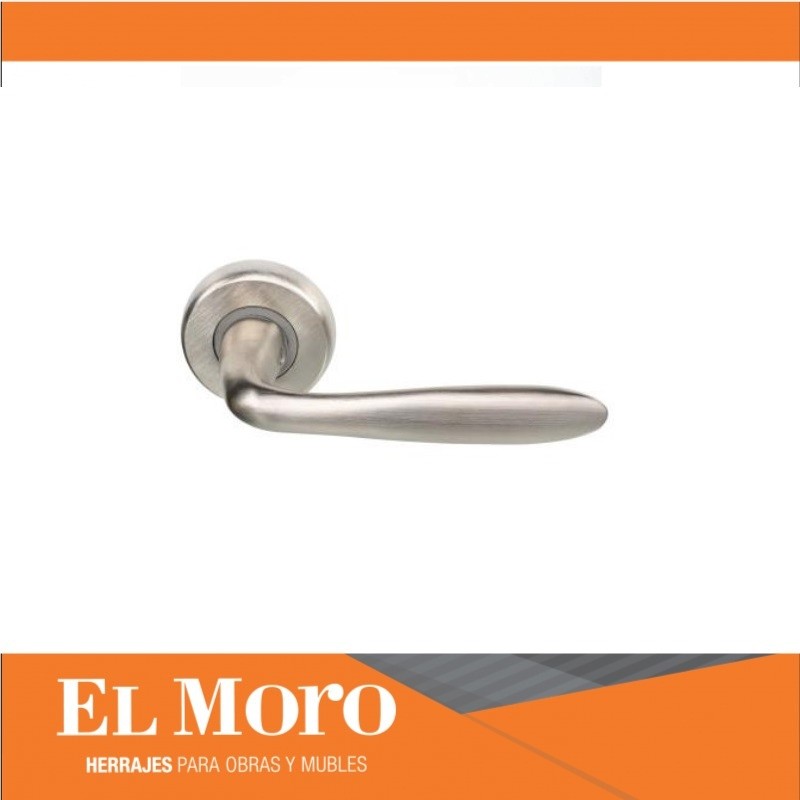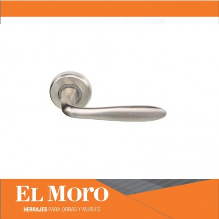 Kit de Manija doble balancín Pampa con retorno, incluye Roseta y Bocallave 48mm con tornillo oculto acabado inox.