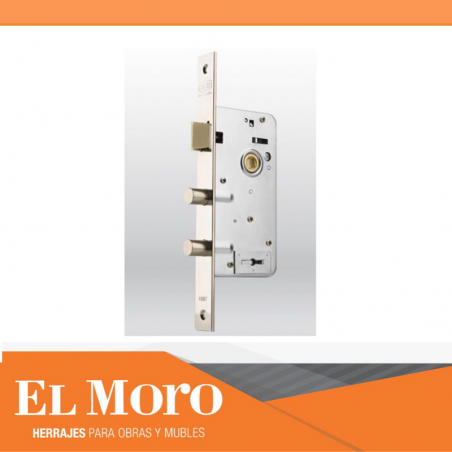 Pestilo entero o partido con punta de bronce trefilado niquelado, reversible desde el exterior. Cerrojo de dos pernos giratorios de acero trefilado. Seis plaquetas de Acero inoxidable. Caja y piezas interiores con protección galvánica de zinc electrolítico. Resortes de acero inoxidable. Llaves de paleta plana. Para embutir. Ideal para consorcio